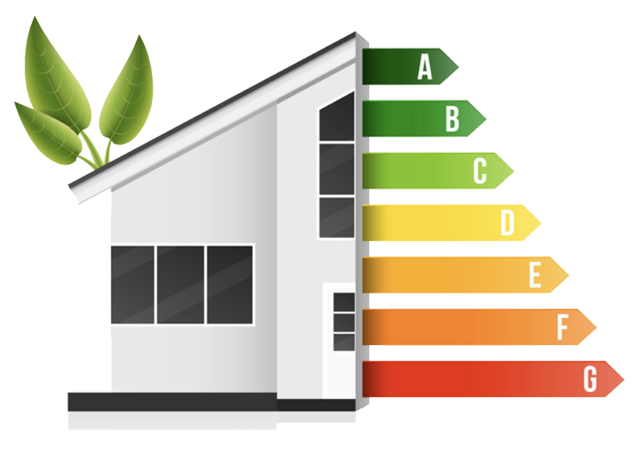 Visualisierung des Hauses + Richtlinie für Energieeffizienzklasse und PV-Ertrag