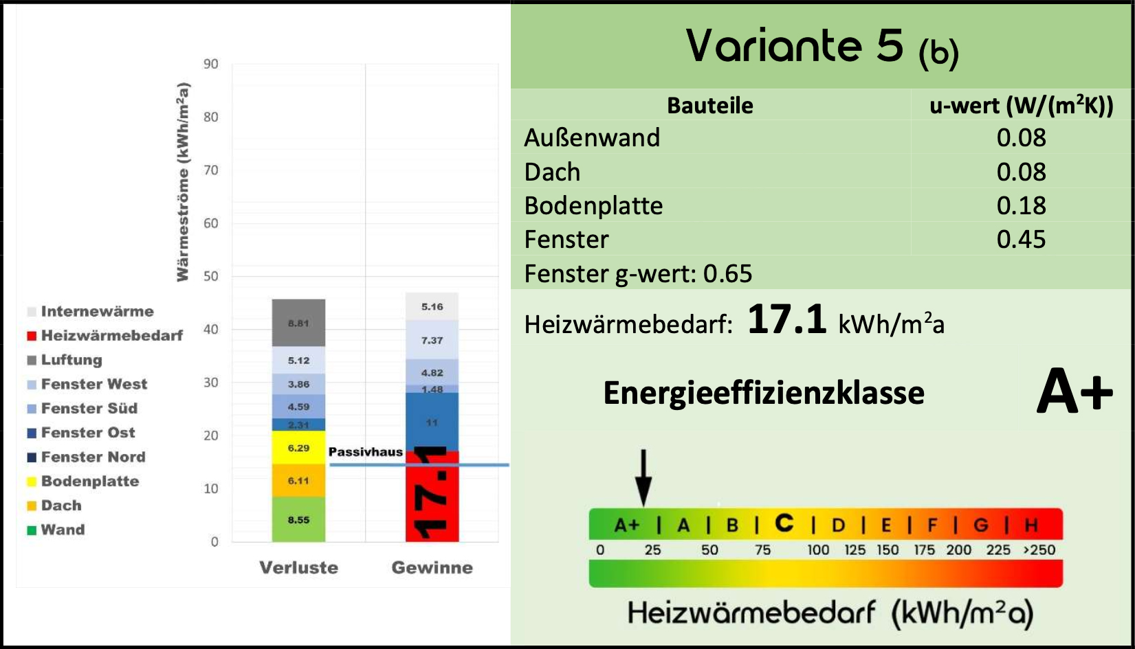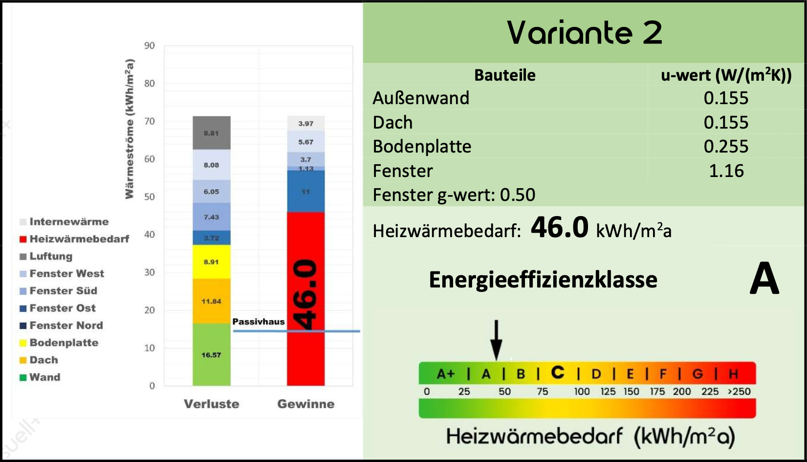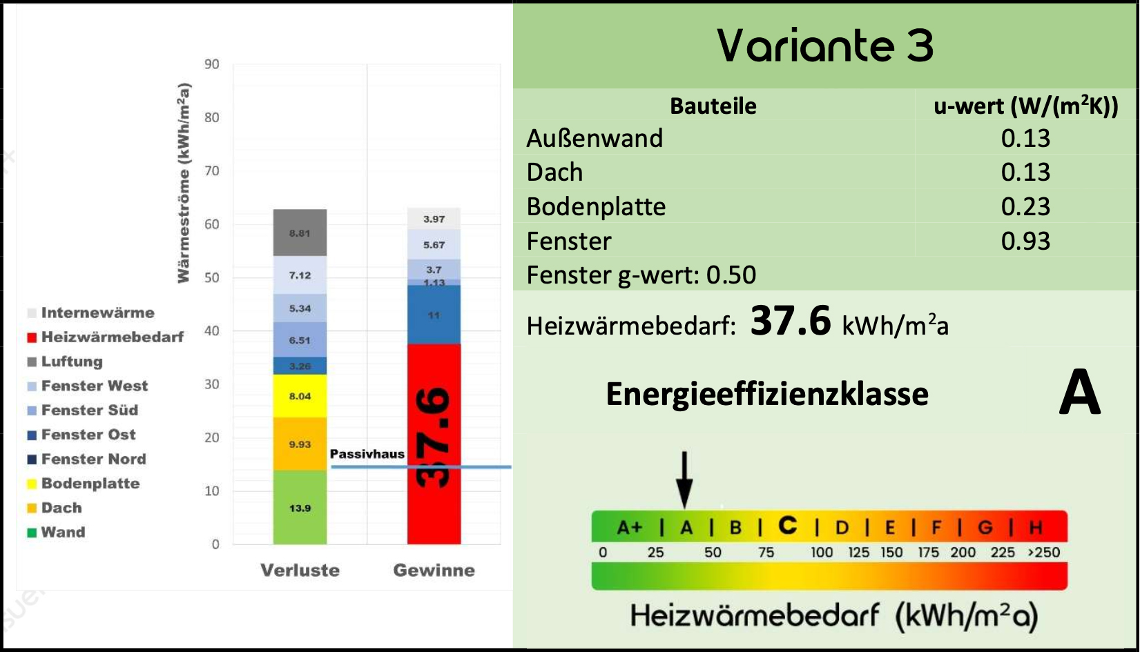 Sollte es also auf dem Markt im Hinblick auf Preis und Kundenentscheidung einen besseren g-Wert der Fenster geben, werden durch fünf weitere Varianten auch Änderungen der Energieeffizienzklasse des Gebäudes vorhergesagt.
