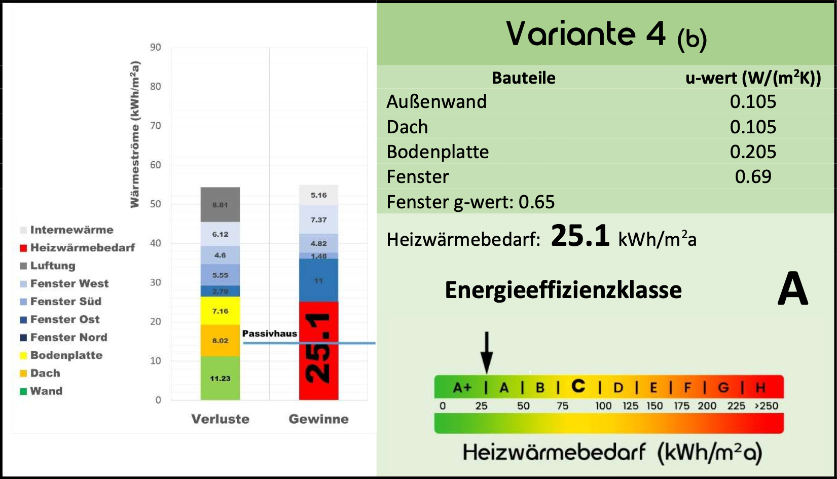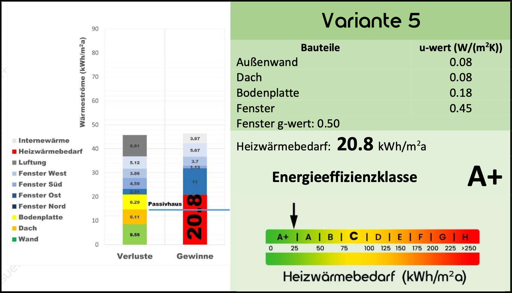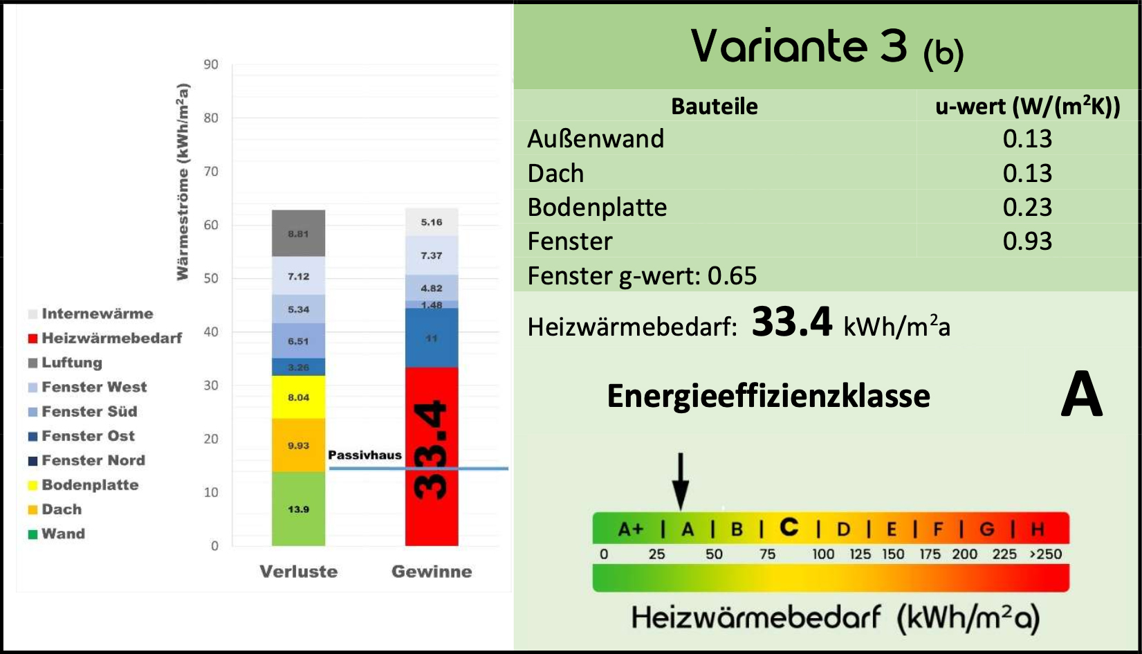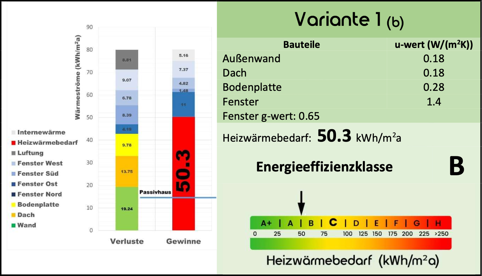 Sollte es also auf dem Markt im Hinblick auf Preis und Kundenentscheidung einen besseren g-Wert der Fenster geben, werden durch fünf weitere Varianten auch Änderungen der Energieeffizienzklasse des Gebäudes vorhergesagt.