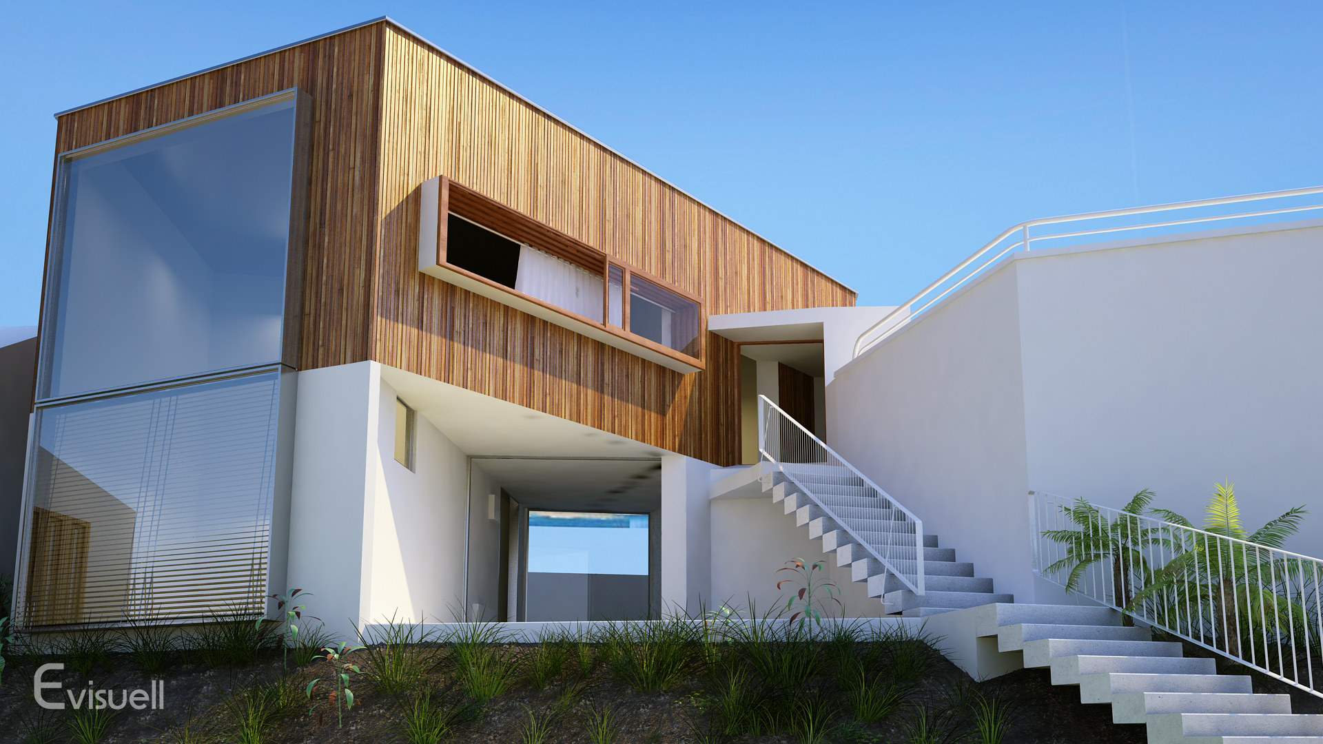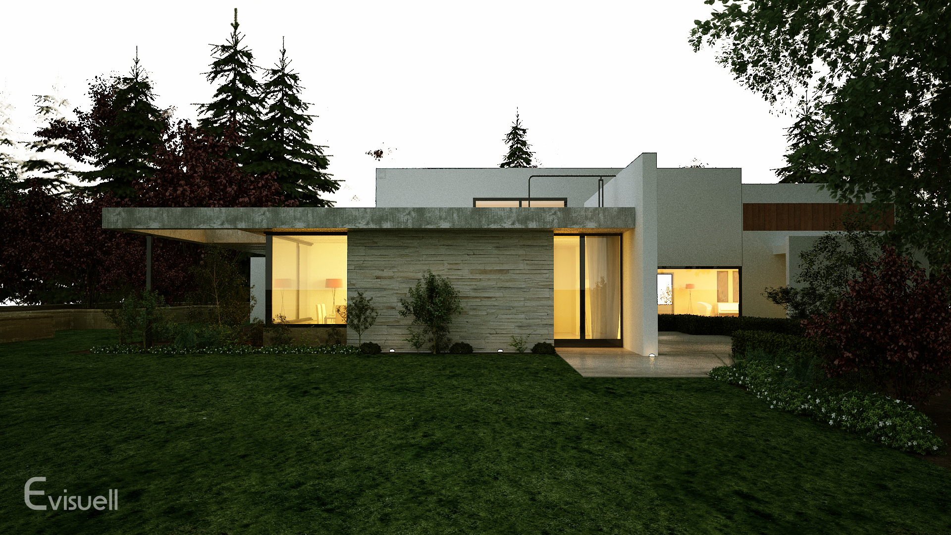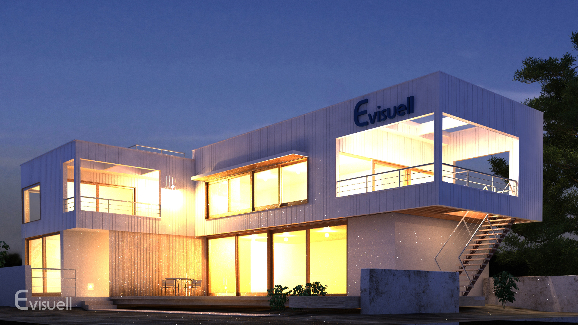In diesen Visualisierungen wird der neueste Stand der Außendarstellungstechnik eingesetzt, um natürliche virtuelle Bilder zu liefern. Außenmöbel, unterschiedliche Tag- und Nachtbeleuchtungen sowie natürliche Bepflanzungen werden in Nahaufnahmen präsentiert, um die Qualität dieses Prozesses zu demonstrieren.