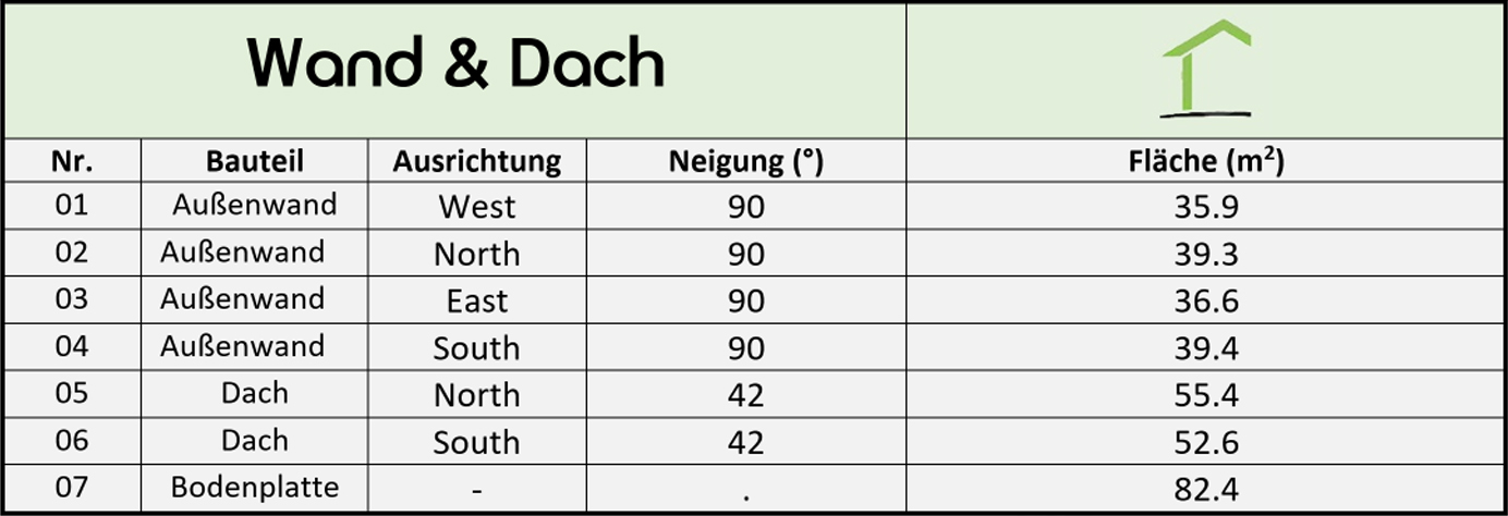 Als Beispiel wurde ein zweigeschossiges Einfamilienhaus mit einem Süd-Nord-Satteldach visualisiert und simuliert. Nachfolgend werden die vier Hauptleistungen von Visuell+ in der Reihenfolge der Leistungen und ihrem Inhalt dargestellt.
